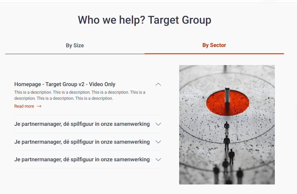 - By Size / By Sector - To display Target Group Items by specific category - Managed via dictionary items