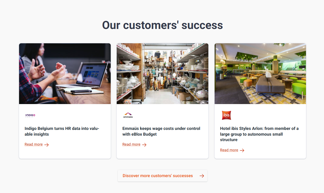 - Cases => Titles/Visuals/Logos/Links are retrieved automatically from Drupal