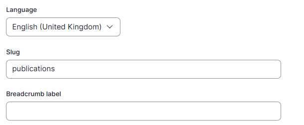 Breadcrumb label: Please use this field if you want a custom breadcrumb. It will be filled automatically with the page title if it hasn't been filled.